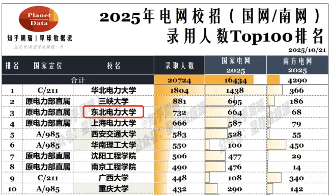 最新的就业数据显示,国度电网录用人数全国第3。